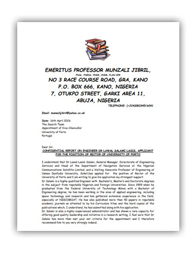 Emeritus Professor Munzali Jibril in support of Professor Lasisi Salami Lawal's Rector Candidacy for University of Porto